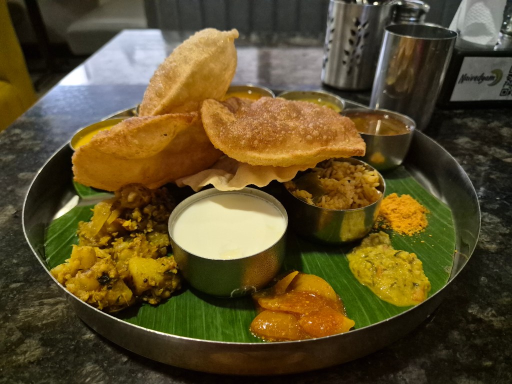 The next morning, I had a leisurely breakfast followed by a swim in the hotel itself. I went out for the local sightseeing and went for a traditional thali at Bhoj. The thali was good, but was a bit overwhelming in terms of the number of items and the size of the servings. I would rate the food 4.0 out of 5.0.