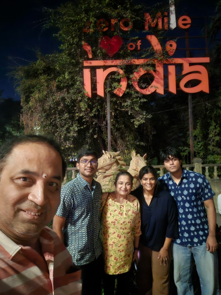 We also stopped at the Zero Mile Stone, a small but symbolic marker that denotes the geographical centre of India. After spending days measuring distance in forest tracks and tiger trails, it felt appropriate to stand at a point that once defined the country’s mapping. We went for dinner at FSB. The food was good.